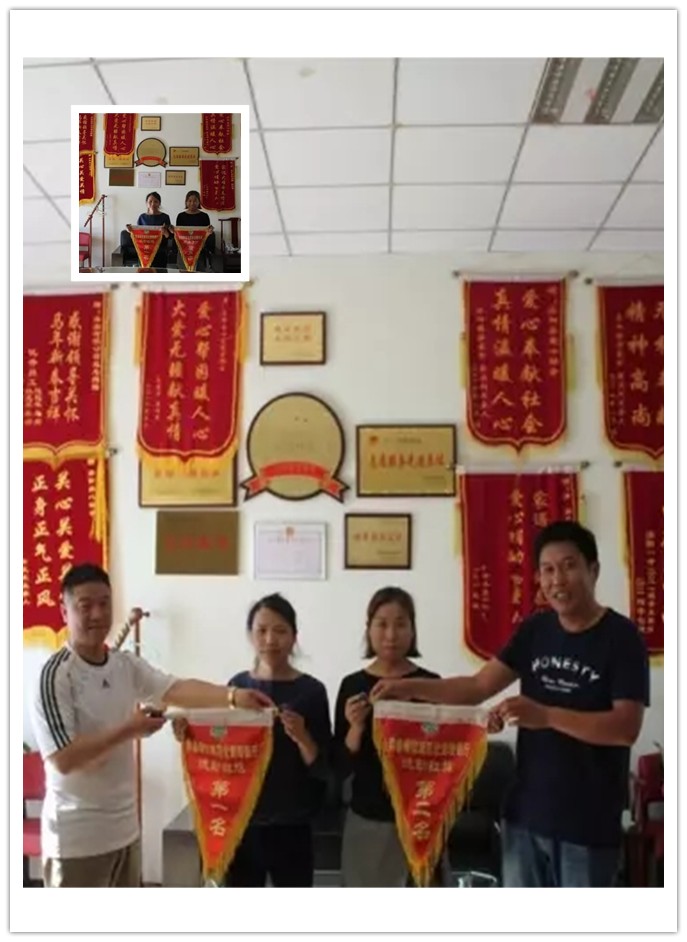公司領(lǐng)導為餐廳頒發(fā)流動紅旗。